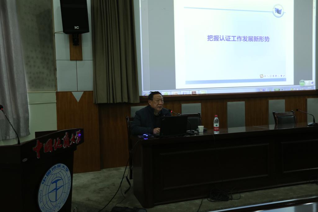最后,中国测绘地理信息学会教授级高工张建国做工程教育认证培训。他讲述了大力开展工程教育专业认证的背景,要求我们把握认证工作发展新形势,了解工程认证的性质、程序和意义。他引导与会人员学习陈宝生部长的讲话精神以及新时代高教40条战略意见。同时,他详细介绍了三级认证即保合格、上水平、追卓越。他指出了遥感和测绘认证申请中存在的问题,并根据专业的现实情况给予了针对性指导性意见。