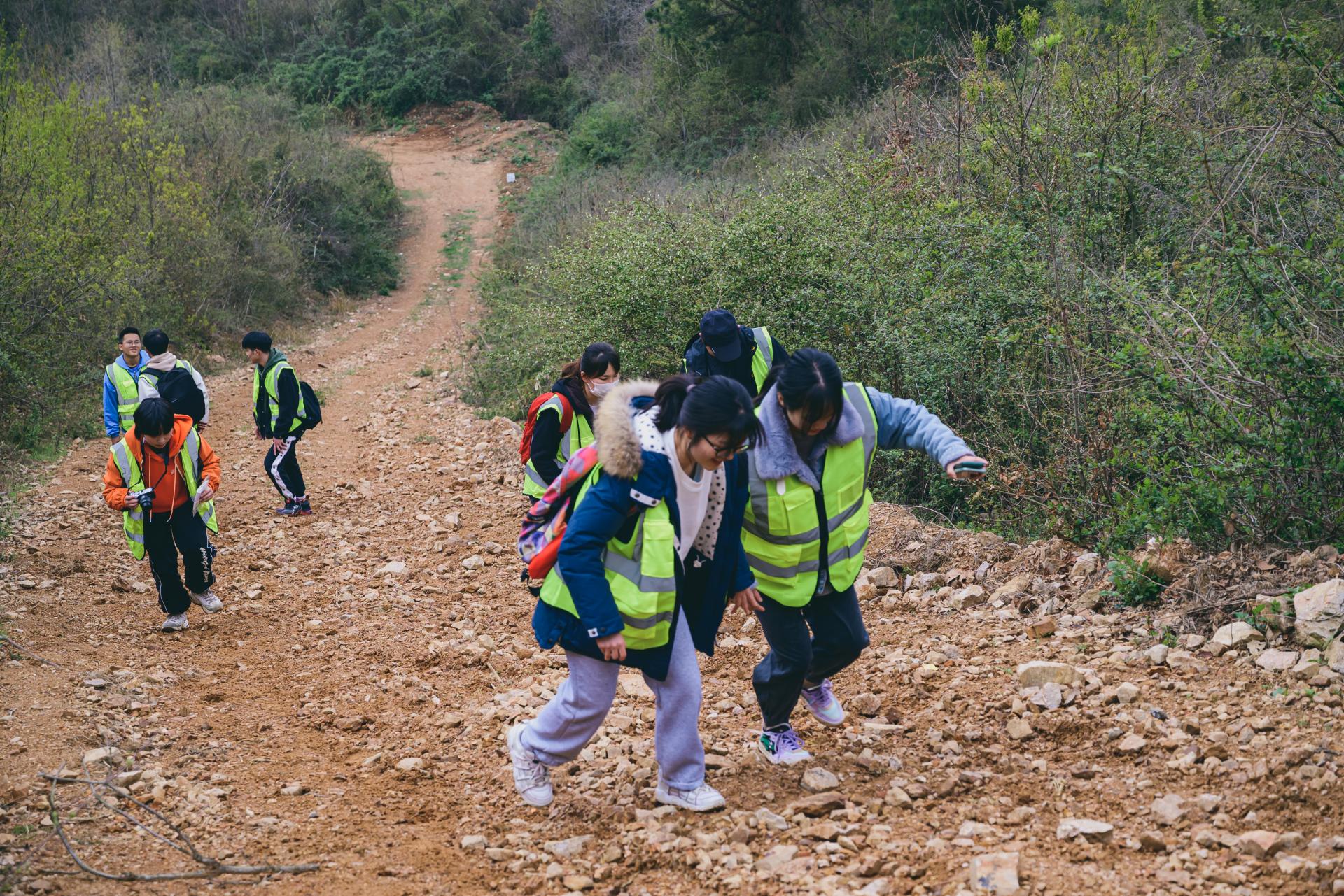 正值三月初春时节,山路经过雨水的洗礼,不仅陡峭而且较为泥泞,上山的过程异常艰难,但同学们怀着永不言弃的信念,彼此加油打气,互相帮助,共同攀爬长岭山。在山顶,同学们还一同唱起了糖心vlog