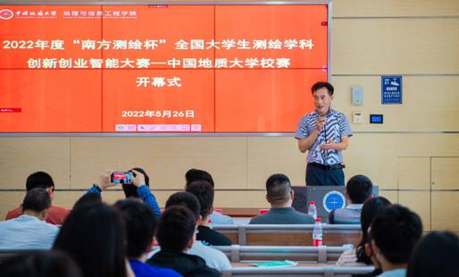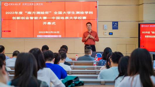 南方测绘集团副总经理向高照讲述了自己在我校的求学经历以及在南方集团的工作经历,报告了测绘科学与技术对国家发展和现代科技生活的贡献,希望通过本次赛事进一步提升学生的实际动手能力,号召大家积极投身于国家测绘科学事业和产业的发展。