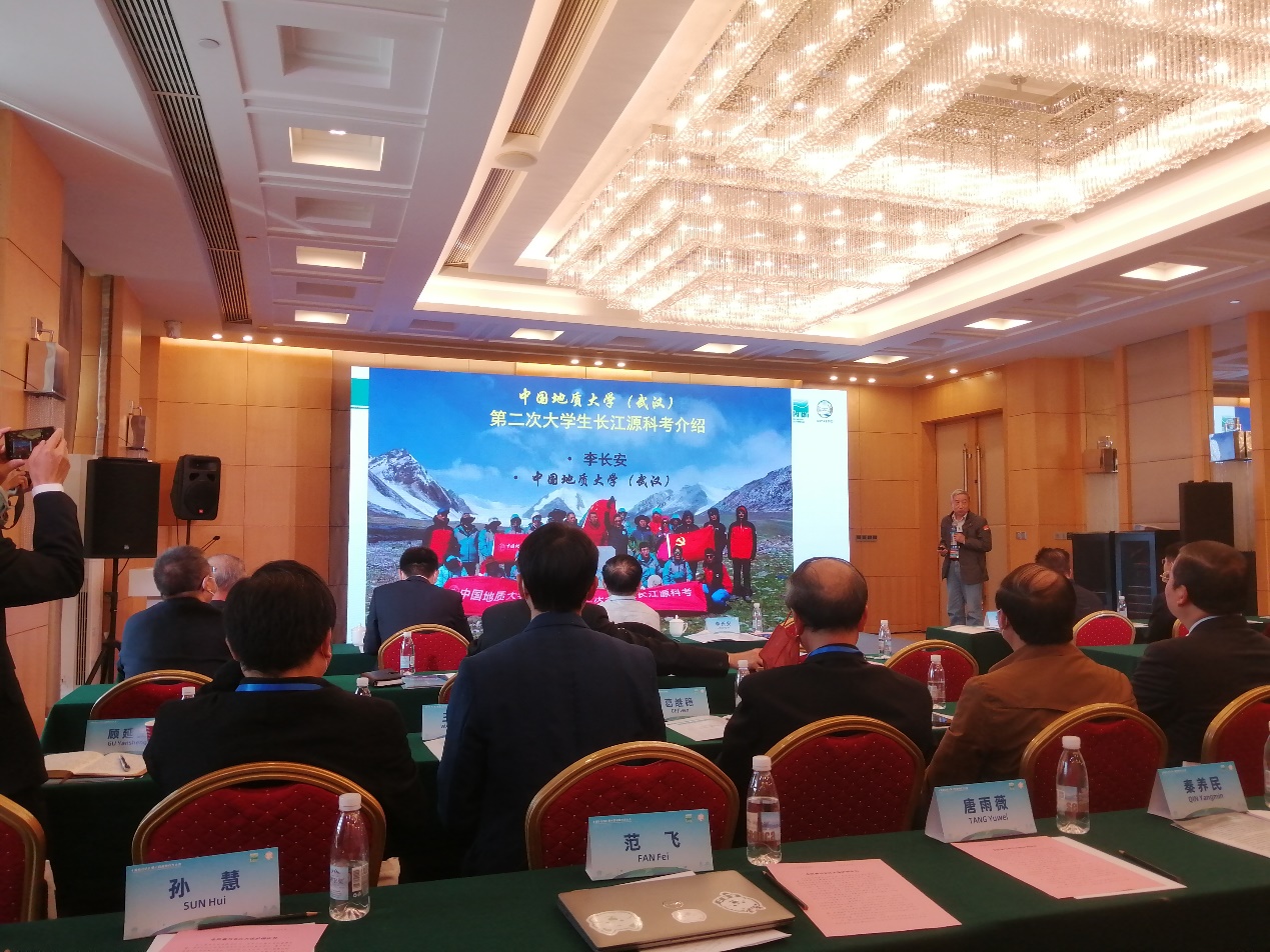 李长安教授作《第二次大学生长江源科考》报告,系统地介绍了长江源科考的目的、意义、任务和主要进展,包括长江源头的确定、水源区水质与水生生物多样性、第四纪环境演化等研究成果,强调了长江源生态环境保护的重要意义。报告后,李长安教授还接受了媒体采访。