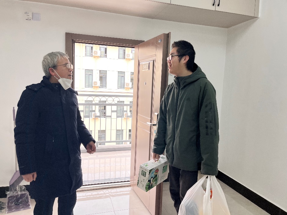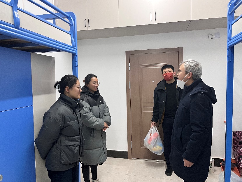 许书记先后来到54、57栋糖心vlog 留校男、女生寝室,与同学们亲切交谈,咨询询问同学们的学习生活情况,叮嘱同学们要注意防寒保暖,充分利用寒假时间,劳逸结合,做好个人规划,春节期间,要保持与辅导员老师沟通交流,及时与家人报平安,并预祝同学们度过一个安全、温暖、祥和的新春佳节。