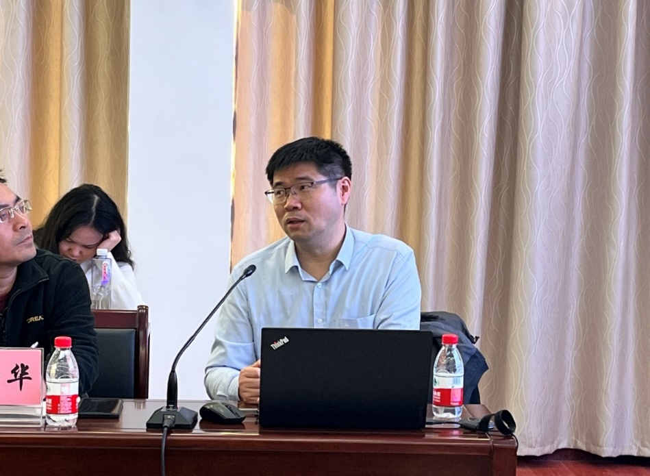 院长王绍强向参会领导报告了自大别山森林生态系统观测基地建成以来,安装在铁塔上的开路式智能涡度协方差分析系统、植被荧光观测系统、红外表面温度观测系统、植物生长节律连续监测系统、CO2浓度监测仪等仪器设备观测的数据情况,并进行分析讨论;报告了经湖北省科技厅认证的“区域生态过程与环境演变湖北省重点实验室”的建设背景、目标、进展和方案等;讨论了依托基地和省重点实验室等平台开展鄂东山地森林生态系统固碳速率与碳汇潜力的调控机制研究的必要性和技术路线等;向一直以来支持和关心大别山森林生态系统观测基地建设的各位领导表示感谢,也期待以该基地为平台和抓手,进一步推进校地深入合作、科学研究和人才培养等工作。