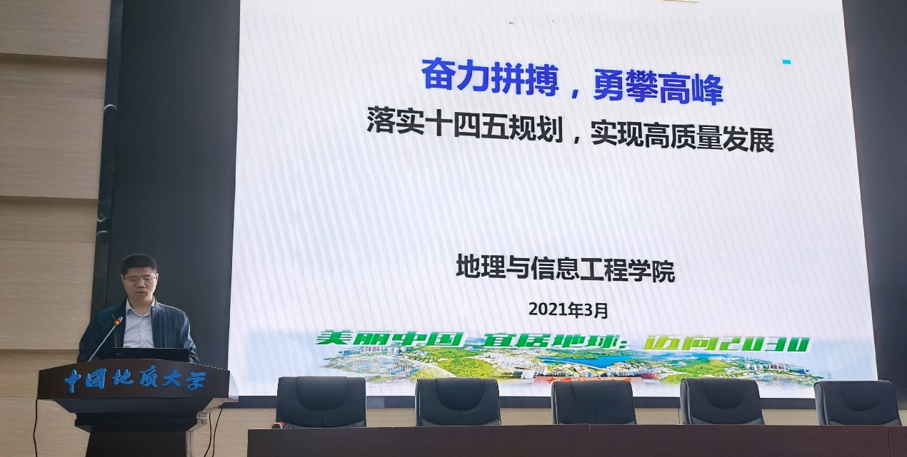 王绍强院长从政策导向变化、学科短板分析、思考与建议等三个方面介绍了第五轮学科评估情况简析,希望全体教师能够高度重视学科建设并为学科建设做出贡献;对学院十四五规划及高质量发展进行介绍和解读,安排部署学院2021年重点工作,希望全体教师积极行动起来为达成十四五目标努力工作。