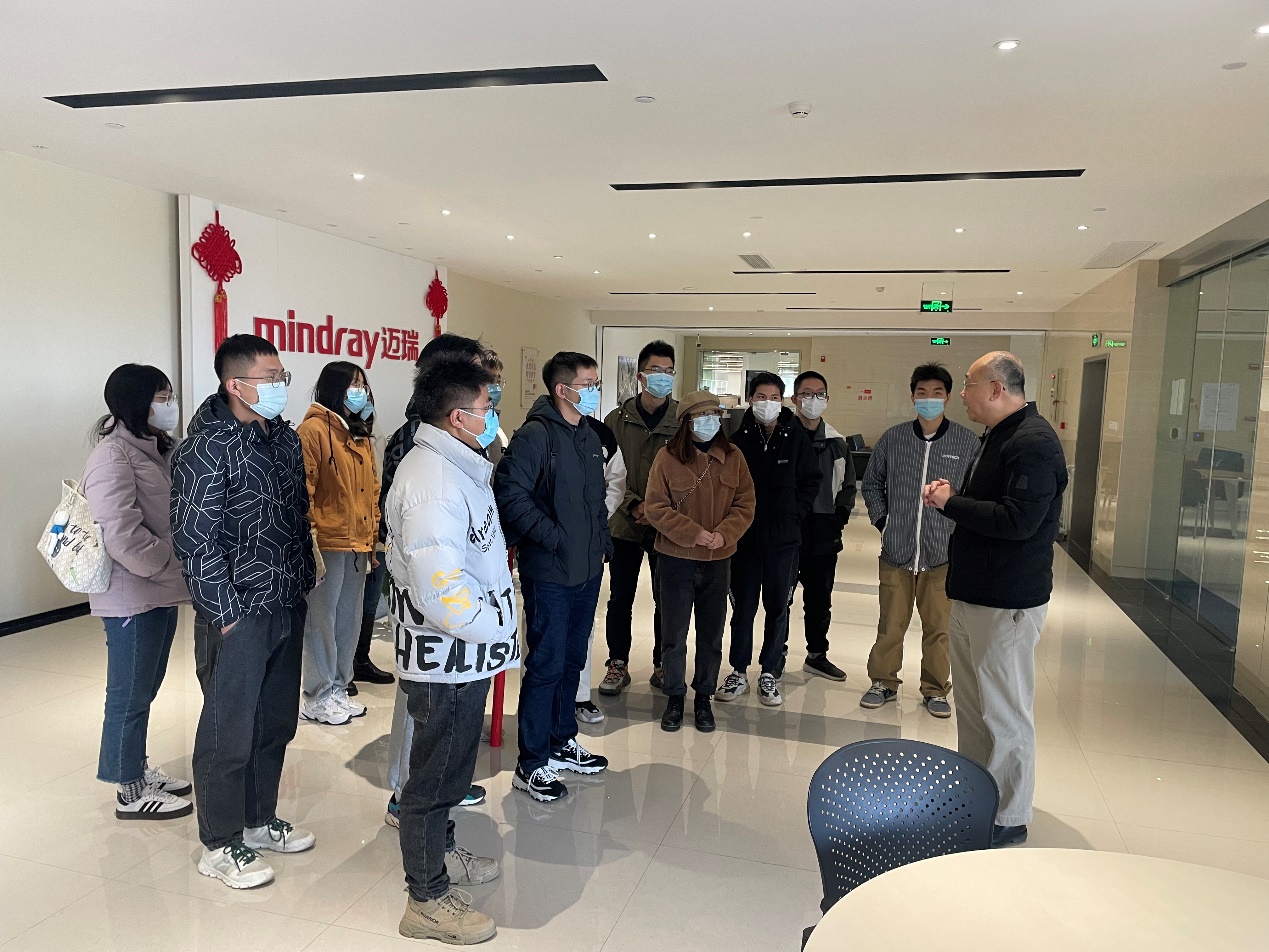 2019级、2020级研究生和2019级本科生共16名同学在学工办穆巴热克老师带领下前往迈瑞医疗武汉研究院参观学习。