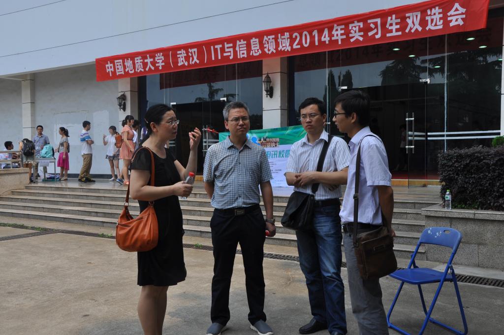 (通讯员:刘芳男 王渊)2014年6月7日9:00,我校西区体育馆内人头攒动、热闹非凡,IT与信息领域2014年实习生双选会正在火爆进行。本次双选会共有来自省内外的35家企事业单位,携600多个岗位走进地大校园,吸引了上千名来自不同学院的大三、大四同学前来参加。本次双选会由信息工程学院和就业中心具体承办,计算机学院、机械与电子信息学院、数学与物理学院协办。