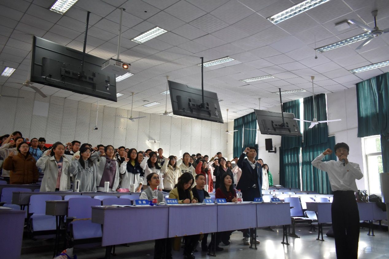 学员代表张鹏同学带领全体学员宣誓。举起的右手、庄严的神态、铿锵有力的誓词,无一不在展示着团学干部积极向上、勇立潮头的精神。“服务大局,服务师生,履行干部职责;积极进取、刻苦努力;精诚团结、务实高效;与时俱进;与时俱进、开拓创新”,铮铮誓词,激励着团学骨干坚定成为新时代马克思主义者的决心。