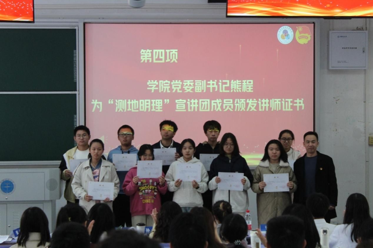 学院党委副书记熊程为“测地明理”宣讲团成员颁发讲师证书。