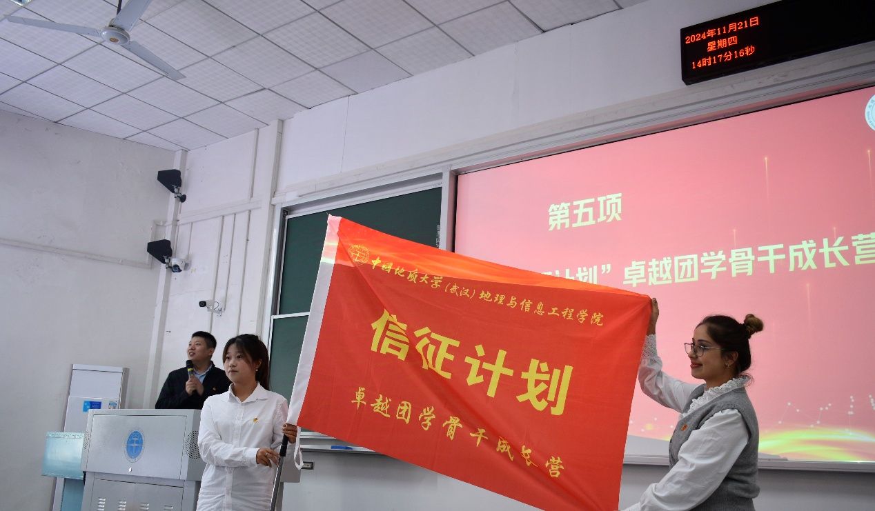 学院党委书记孙莉为“信征计划”卓越团学骨干成长营授旗。