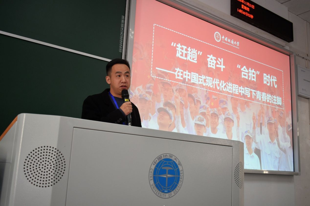 最后,学院党委副书记熊程作主题报告《“赶趟”奋斗 “合拍”时代——在中国式现代化进程中写下青春的脚步》。熊程指出,新时代为青年提供了广阔的发展空间和无限的可能,但同时也伴随着激烈的竞争和复杂的社会环境。因此,青年们需要不断提升自我,增强本领,才能更好地适应时代发展的需要,实现个人价值与社会价值的统一。