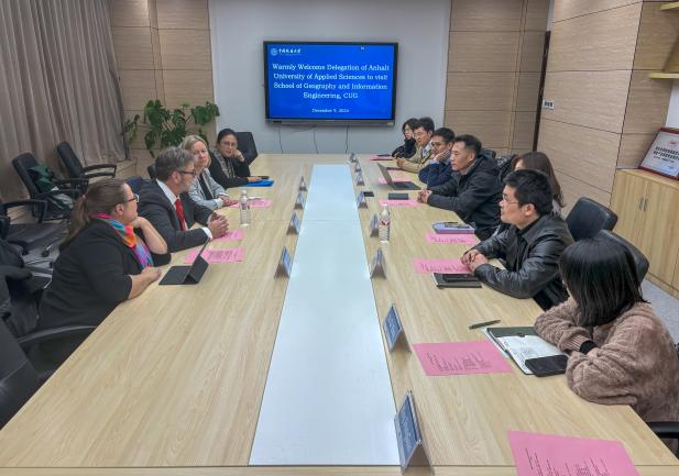 ,进一步推动两校在教育、科研及国际合作方面的交流与合作。安哈尔特应用技术大学代表团由副校长路塔·库巴斯教授带队,成员包括副校长助理贝娅塔·瓦尔特博士、国际事务办公室主任安娜·贝尔女士以及德绍校区国际留学生顾问陆以理老师。本校参会人员包括国际合作处副处长范陆薇、学院副院长徐景田教授、副院长宋小青教授、学院教师代表们及广大学院研究生。