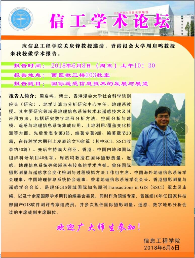 信工学术论坛第115期:香港浸会大学周启鸣
