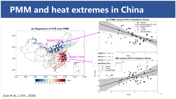 罗明副教授认为,在城市化与气候变化的背景下,区域极端气候事件频率与强度都有增加的趋势,这将直接影响到人类健康和社会生产生活,因此,对区域极端气候事件的研究,将有助于我们制定相应的应对措施。罗明副教授介绍了近年来在研究高温热浪形成机理和变化规律方面的研究,从天气状况、年际变化以及年代际气候尺度,分别分析了我国华南地区与西北地区热浪事件的特征。罗明副教授指出,城市化的造成的热岛效应以及干岛效应也会对区域尺度天气事件有影响,并通过具体的研究实例介绍了量化城市影响程度的研究思路和方法。