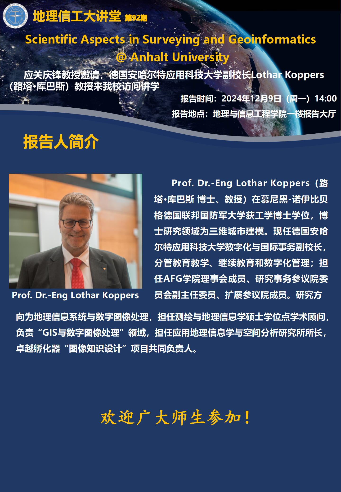地理信工大讲堂-Prof. Dr.-Eng Lothar Koppers