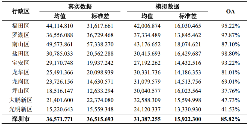 4深圳市和各行政区的真实房价数据和模拟数据的对比