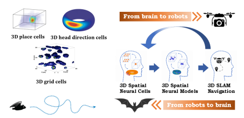 陆、海、空以及太空机器人的应用越来越广泛,然而在复杂三维动态未知环境下,机器人三维自主导航仍面临许多难题。而自然界中的人类和动物,比如蝙蝠,却具有非凡的三维空间认知和导航能力。近年来,神经科学家们逐渐发现了大脑三维导航的神经机制。其中2014年诺贝尔生理医学奖颁发给了位置细胞(Place Cell)、网格细胞(Grid Cell)的三位神经科学家John O'Keefe、Edvard I. Moser和May-Britt Moser,以表彰他们在发现大脑定位系统作出的杰出贡献。这些重要发现也为我们开发新的智能三维导航技术提供了重要灵感和理论基础。