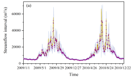 2. 采用点预测和区间预测的统计指标评价表明,对于长江上游的径流预报,本模型的预报性能较好,预报精度得到了一定的改善