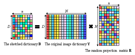 首先介绍第一种方法,非局部可拓展加权稀疏低秩子空间聚类(NL-SSLR)。为有效降低子空间聚类模型的计算复杂度,我们引入可拓展子空间聚类模型(Sketched subspace clustering model),利用随机投影快速构建具有同等刻画能力的压缩字典,如图1所示,用于像素自表达学习,从而高效挖掘高光谱影像数据结构。在此基础上,构建加权稀疏低秩表达模型,同时挖掘高光谱影像像素点集潜在的局部结构信息和全局结构信息,从而更加准确的学习高光谱像素之间潜在的邻接关系;另一方面,构建非局部均值正则化约束,探究影像的自相似性,耦合影像非局部空间信息在表达域一体化建模,充分挖掘影像空-谱特征在表达域的高判别性,同时促进系数矩阵的平滑性,以保障聚类结果的空间一致性。
