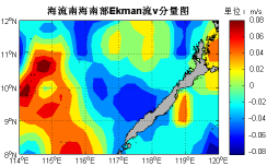 图1、2分别为地转流u、v 速度分量, 图3、4分别为Ekman 流u、v 速度分量,其中u为经向流速,以北向为正,南向为负;v为纬向流速,以北向为正,南向为负。