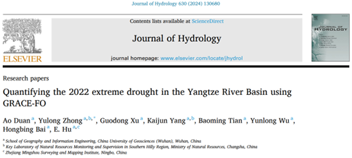 测绘遥感系2020级本科生段敖在水文水资源领域权威期刊《Journal of Hydrology》(地大T1,中科院1区TOP,影响因子6.4)发表学术论文《Quantifying the 2022 extreme drought in the Yangtze River Basin using GRACE-FO》,精确揭示了2022年长江流域极端干旱的爆发、持续时间等重要时空演变过程和水组分变化。本文的第一作者为糖心vlog