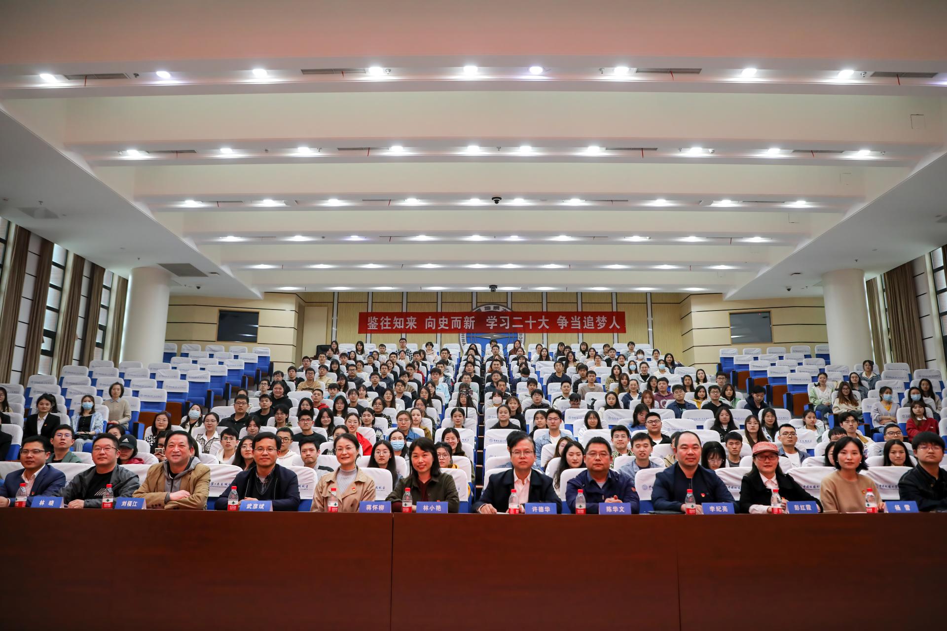 党委书记许德华,校党委组织部副处级专职组织员林小艳、党委宣传部副部长陈华文、党委学生工作部副部长蒋怀柳、党委研究生工作部思政办主任李纪亮,学院党委副书记武彦斌及参赛师生300余人参加本次宣讲大赛。大赛由张恪主持。