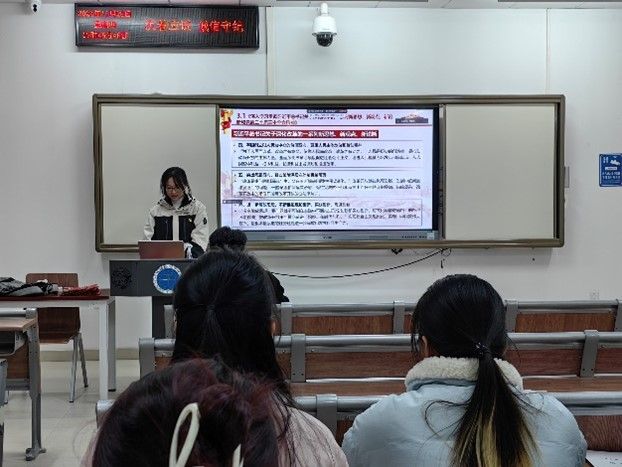 第三项活动,党员领学环节。由党员邓蔚领学党的二十届三中全会精神和全国教育大会精神的相关内容,学习习近平总书记关于深化改革的一系列新思想、新观点、新论断;党员石瑞琳领学习近平总书记在中共中央政治局第十七次集体学习时的重要讲话精神,深刻领会建设文化强国的内涵和重要意义;党员孙祎涵领学《求是》杂志中习近平总书记重要文章《促进高质量充分就业》精神;党员蔡豪爽领学《毛泽东选集》-实践论。