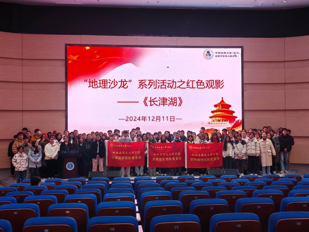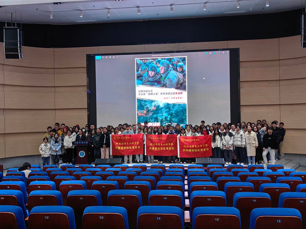 一楼报告厅联合举办了“地理沙龙”系列活动之红色观影活动,以《长津湖》为媒,带领地理学子共同感受地理与战争的紧密关联。从天寒地冻的战场到学术研究的课题,地理始终深深烙印在人类历史的进程中。这场观影不仅是一次历史的重温,更是一次精神的洗礼。