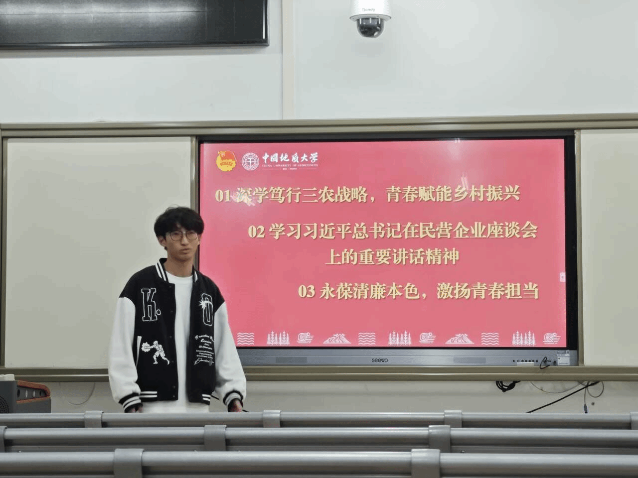 地理信息科学党支部书记,2021级本科生徐宝智以驻班党员身份参加活动。会上,团支部结合学校2025年上半年推荐先进青年入党工作,召开“推优入党”大会,支部严格遵守推优工作的相关规定,通过民主推荐和全面考察,郑重、严谨地向党组织推荐优秀团员入党。在理论学习部分,团支部书记朱治锦带领支部全面学习支部团日学习内容,通过观看“青年大学习”两会特辑视频,引导团员们强化政治意识与使命担当,争做奋勇争先的排头兵。