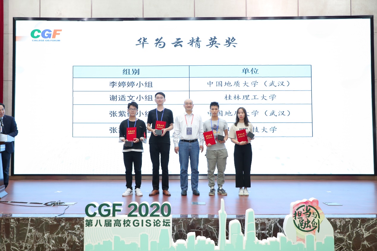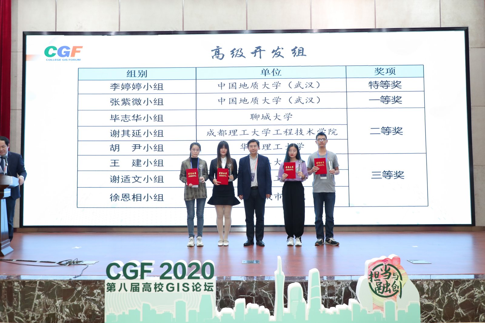 李婷婷、杨亚仑、盖涛、郑哲4位同学组成的团队,在郭明强老师的悉心指导下,经过长达6个月的准备与努力,最终该团队以优秀的作品《农查查》荣获大赛唯一的一项特等奖,并同时荣获了华为云精英奖,郭明强老师荣获“最佳指导老师”称号,使得我校再一次成功卫冕全国高校GIS技能大赛特等奖。