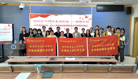 在未来城校区公教一113举办“读懂中国”暨迎校庆70周年系列活动。本次讲座邀请了我校原人文与管理学院退休教授盛宏模老师,讲座以“个人经历——历史责任”为主题。参与本次活动的有学院党委副书记武彦斌、环境遥感团队党支部、全球变化团队党支部和空间规划团队党支部党员和入党积极分子。讲座由空间规划团队党支部宣传委员杨立言主持。